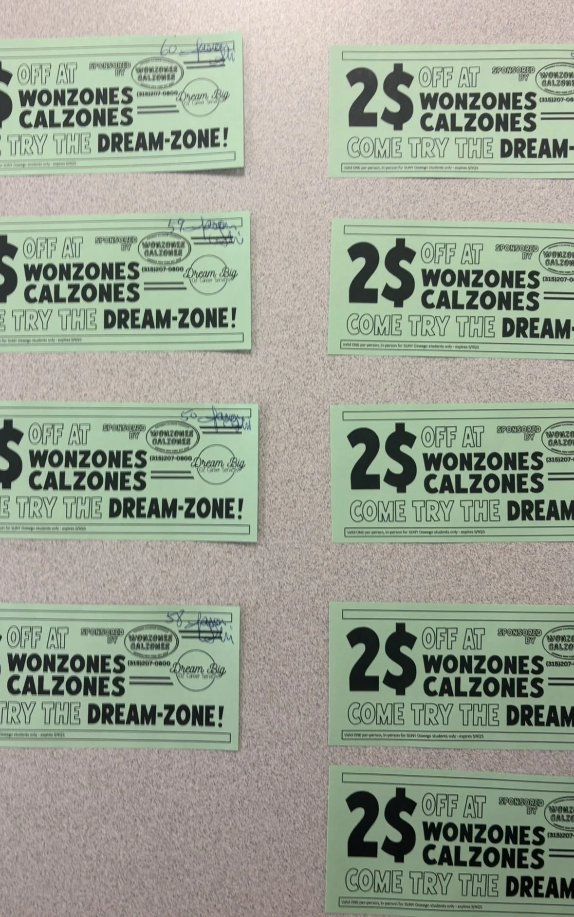 Planned and executed collaboration with popular local business Wonzones Calzones to promote Career Services’ largest event, the Dream Big Career and Internship Fair.